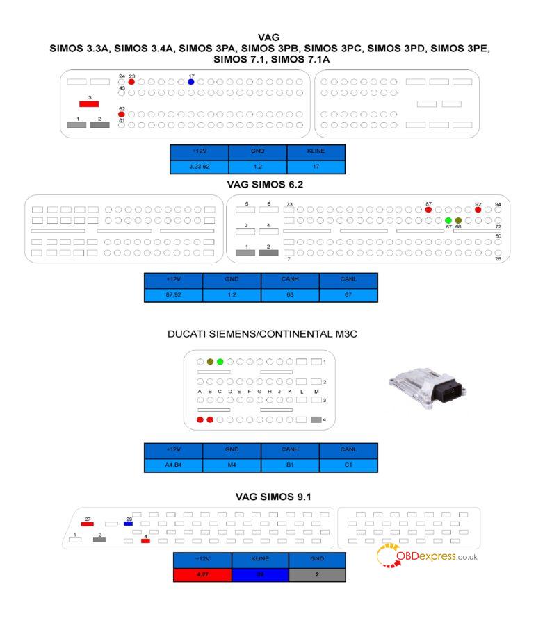Selection of ECU pinout photos (connectors, pins, supply, CAN lines, etc.). Public library to help tuners and technicians.